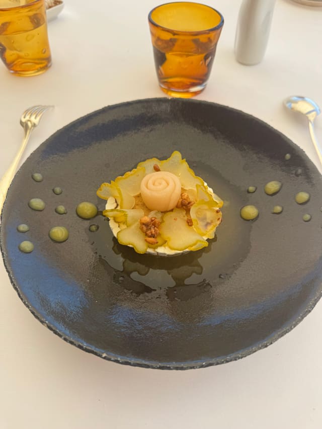 10/10First of all, due to the location we could breathe on a July evening: Temperature was perfect. The setting, the menu and most important the cheese chariot was perfect☘️ Their own production of honey was a real treasure for us. The hotel garden is subject to another discussion???? ( full of olive trees )