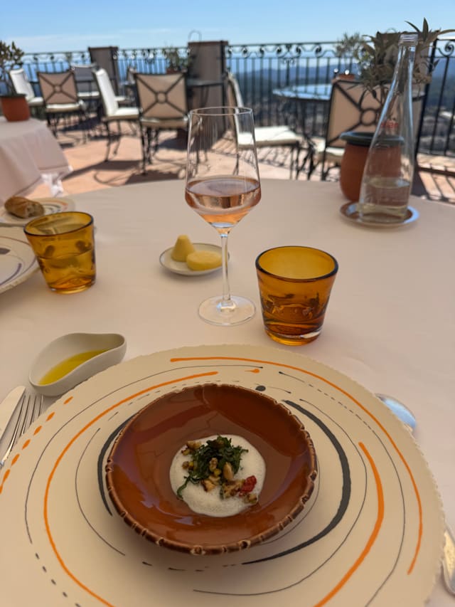 10/10This is a fantastic restaurant, The food is amazing, the service perfect. The wine pairing was excellent- and all in a really beautiful setting overlooking the Mediterranean far below. What a great night and dinner this was!