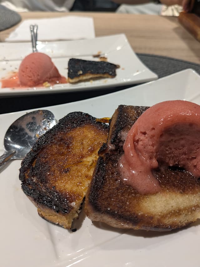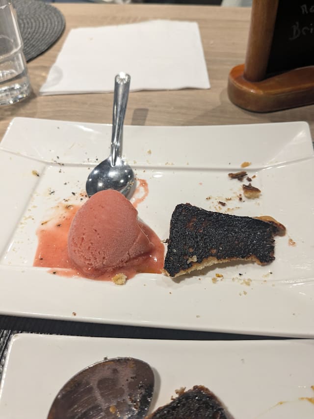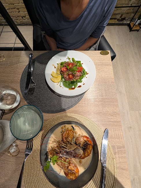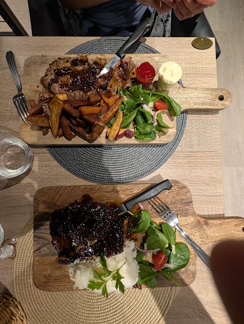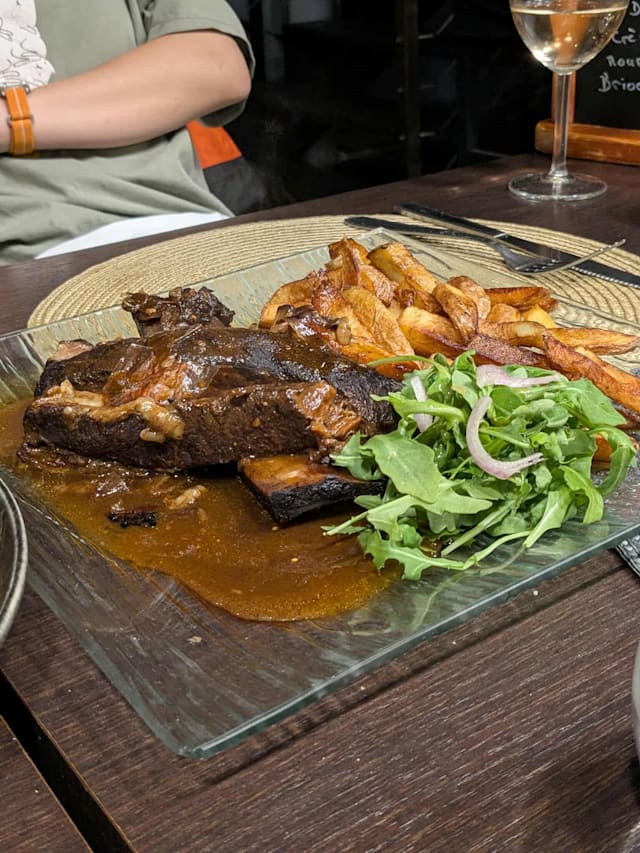 5.5/10I was hopeful based on the reviews, but quite disappointed. It’s a small place and was reasonably, but not overly full. I stood inside the entrance for over 2 mins with 3 people working behind the counter in my direct eye line, before any of them acknowledged me. It was another 8 mins sat at the table before being offered a menu. However, I was there for the food and could forgive this. I had the tuna tartare starter, which was ok. I ordered the Rib de boeuf for main, having read great reviews, but they said it was off… without having read the alternatives properly, I quickly switched to pave de boeuf and maybe that was my mistake. I got a thinly sliced steak of rough, chewy meat, with a drizzle of sauce that was on the edge of being burnt. The red wine by the glass was limited but ok, but came with a full table spoon of sediment. I think I just ordered the wrong things. Most people were drinking cocktails and other people seemed to be really enjoying their food.