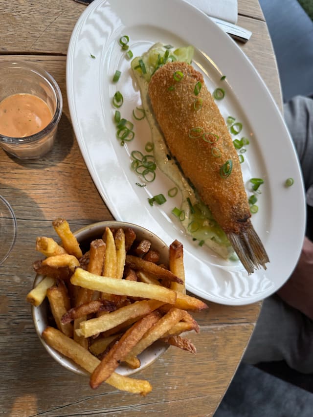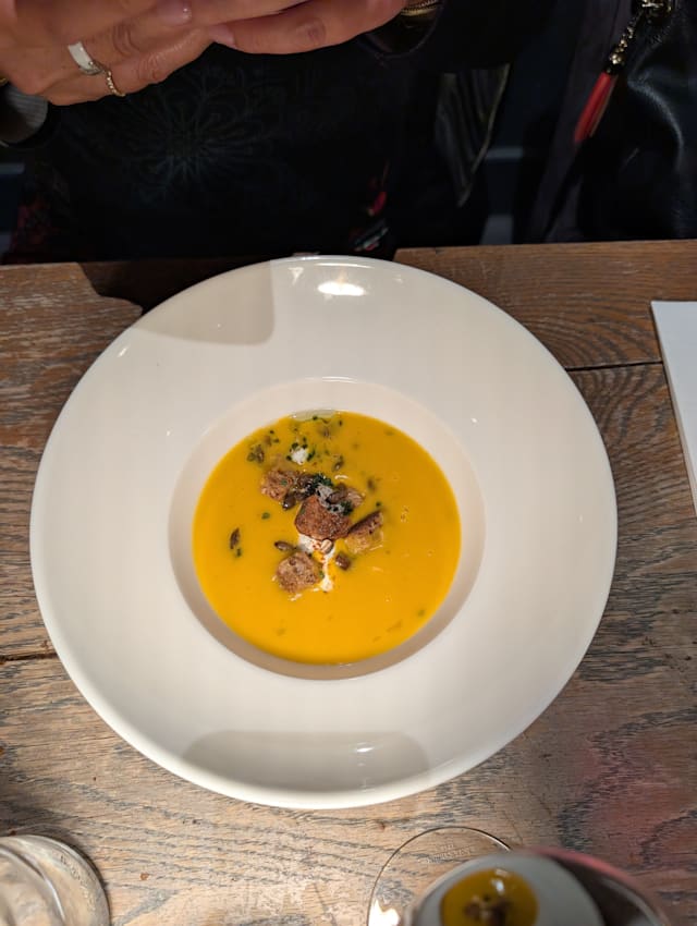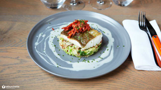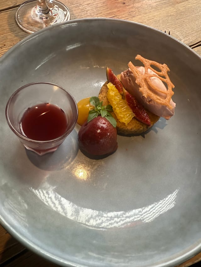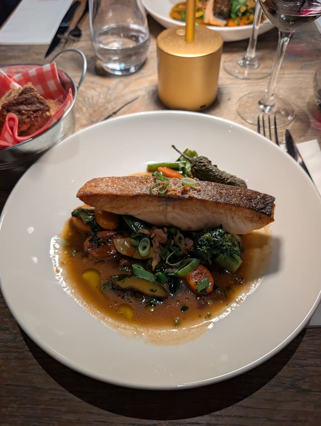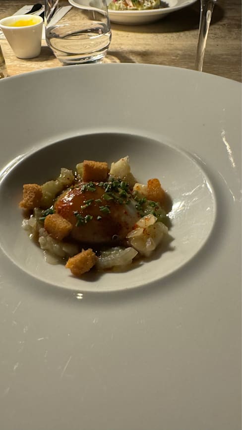 9.5/10A really lovely restaurant, light, airy, lots of outside tables. A small but pretty much perfect menu (if we lived nearby we’d come often but hope the menu was changed regularly), and it was beautifully presented. Price? Excellent for the quality of every element. The wine list was shortish but very attractive and those we chose were very good Loved it!