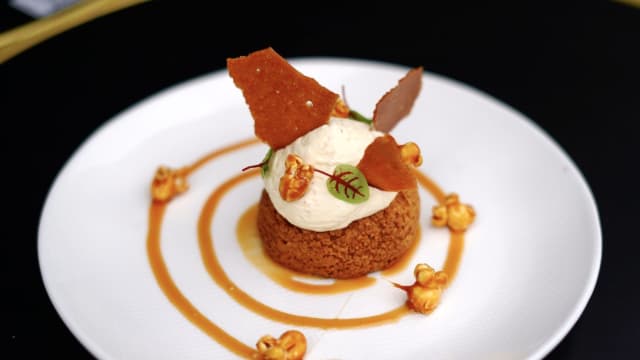 (Supplément de 3€ dans le menu) Glace vanille, sauce chocolat, sarrasin.