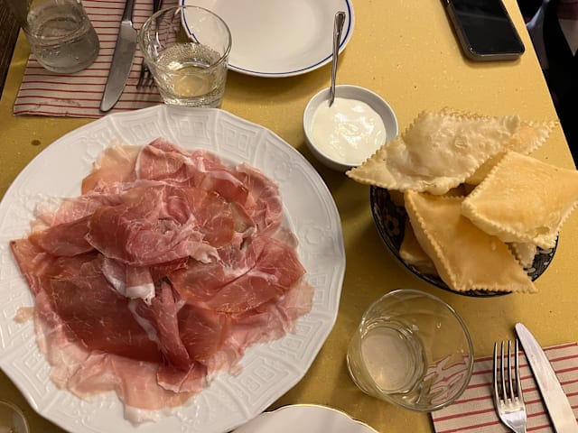 10/10Very good restaurant. Exceptional quality of food (absolutely must try the gnocco fritto in every possible variant). The waiters (or owners) were incredibly nice and helpful (we were in fact a group of 5 adults with 4 small children (a nightmare) and they were very nice and helpful despite the disaster we wreaked. Thanks! we will definitely be back (no children, I promise)