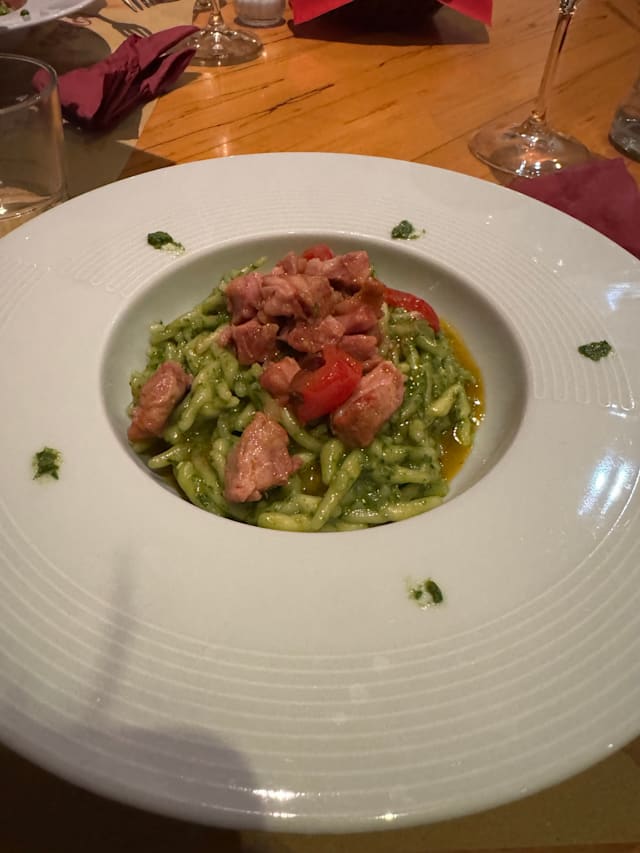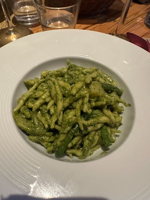 6.5/10The restaurant is nice and we could seat outside. I got a main course, trenette al pesto, but the taste was a bit acid. I'm a local and I know pesto well.
