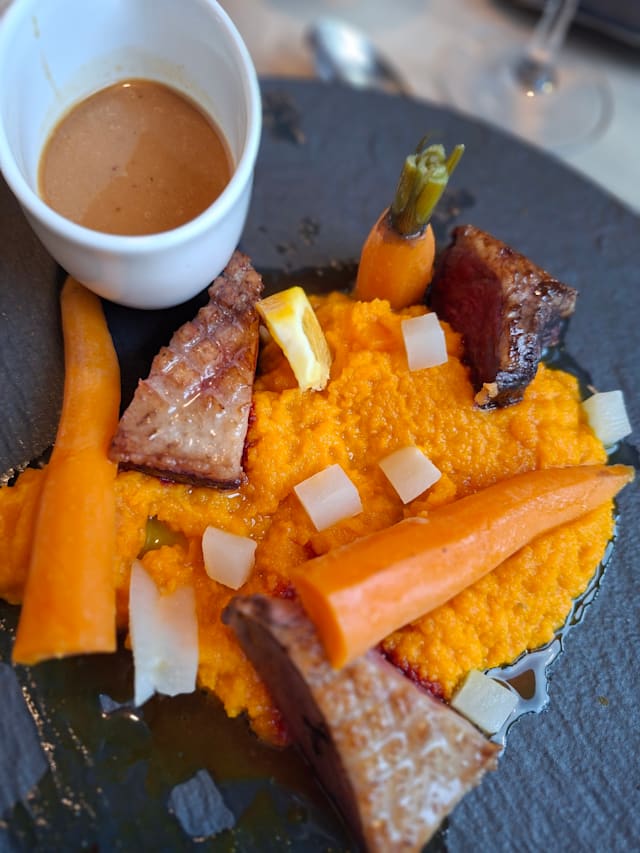 9.5/10The servers in this restaurant were excellent and very accommodating; they quickly switched to English upon my limited French and then checked the meal for ingredients I am intolerant to. They worked out a swap so I was able to eat a full meal and were incredibly nice about it. They recommended wine pairings when asked and explained the French menu very considerately for the non-French speaker among us. The food was of a good quality and felt good value.