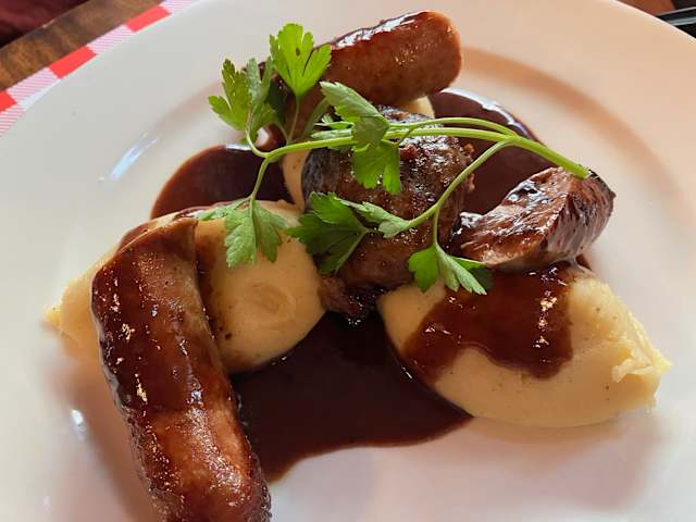 - Atriaux et saucisse à rôtir de monsieur Porchet, purée de pommes de terre