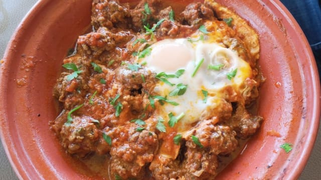 (kefta avec son œuf moelleux et sauce tomate )