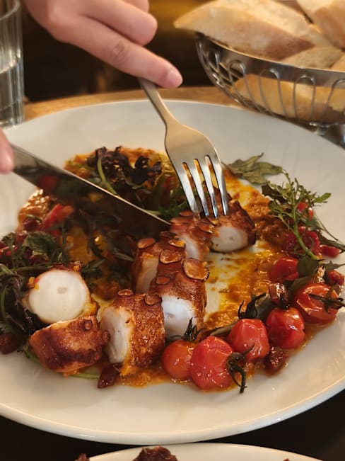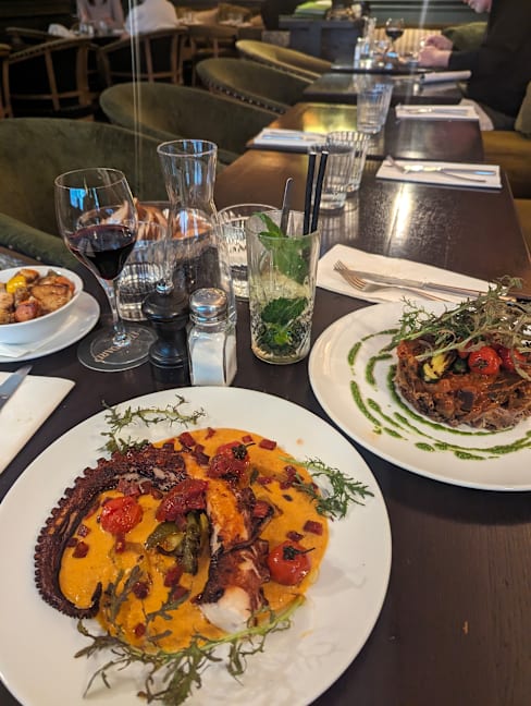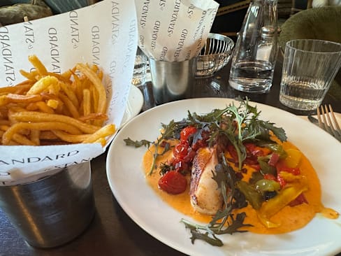 8.5/10Standard Rive Gauche in Paris provided a delightful late lunch experience. The friendly and helpful waiters added to the pleasant atmosphere. Our meal began with excellent fried calamari, perfectly cooked and flavorful. The cheese veggie salad was delicious and generously portioned. My main course, the octopus, had a tasty sauce, though the octopus itself was slightly tough. The restaurant's decoration and ambiance contributed positively to the overall experience. I rated it four stars.