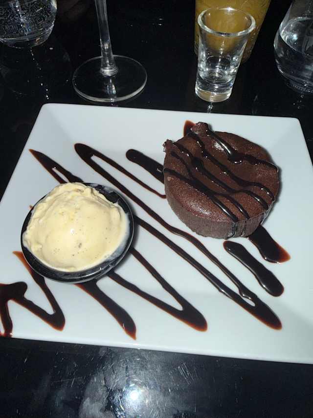 - Feuilleté au miel, garni à la pistache accompagné d’une boule de glace artisanale (au lait de chèvre)