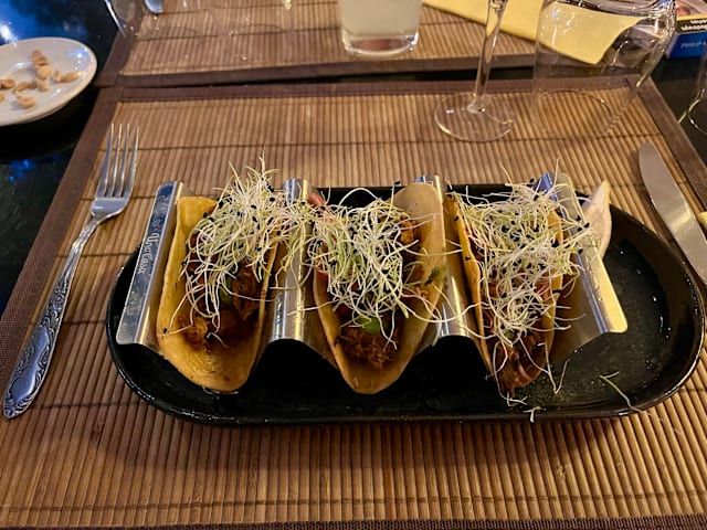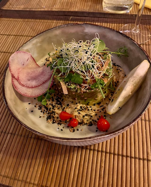 7.5/10The service was attentive, welcoming and friendly. The choices for drinks were overall good and of a reasonable quality. The food had nice ingredients and were designed to have a mesoamerican twist. The flavors in that fusion style cuisine unfortunatlly didn‘t meet the mediterrane nor the mexican flavor profile in a good way. Some less twist in each dish would have enhanced the experience.