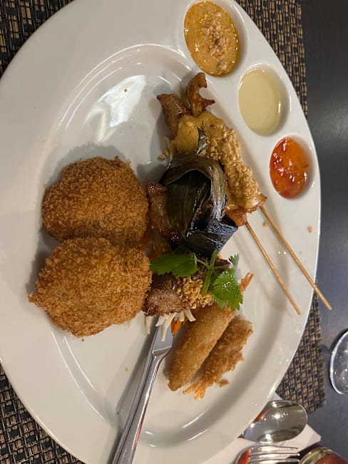 6.5/10Satay was bland. Crispy shrimp was crispy , but nothing exciting. Green ans red shrimp curries were very good. We weren't expecting this since our starters were disappointing. The chef must be aware of this as there was a big difference in flavours between starters and mains
