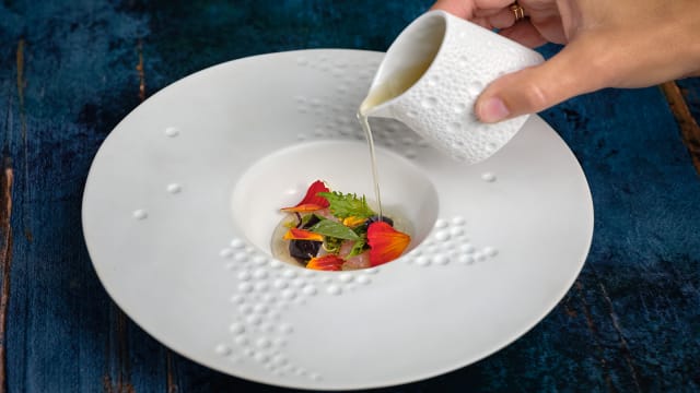 - Une simple intention de partager un moment privilégié où opère la magie qui lie la vision du chef à celle des artisans pour créer un moment unique et suspendu.
