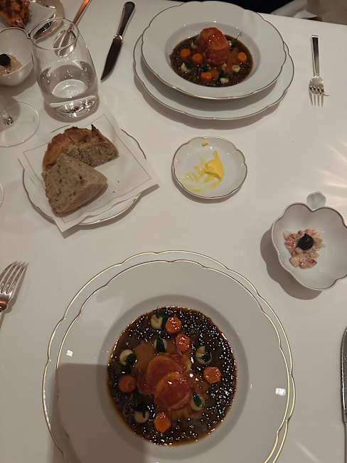10/10+3I was impressed deeply by 1) the elegant ambiance; 2) exquisite food, I ordered a three courses lunch special, however I counted, I tasted about 8 courses, and every single course gave me surprise. The food, the tastes, the presentations were beyond my expectations. My most memorable course was the rich and delicious foie gras, I never had anything like that. 3) the services were outstanding, I had about four or five different servers served me: drink, wine, ordering and delivering. I felt that I was treated like a loyalty. I visited Le Taillevent 2002 with my son when touring Europe, my son was 5 years old, he commented he had the best mashed potatoes ever, after 22 years, he still talked about it. After Covid, summer of 2022, when I came to Paris, I wanted to book two seats, I wasn’t able to, because in August Le Taillevent was closed. I was a little disappointed. The serious stress caused by US presidential election left a deep wound in my heart, but the food cured me. Thanks!