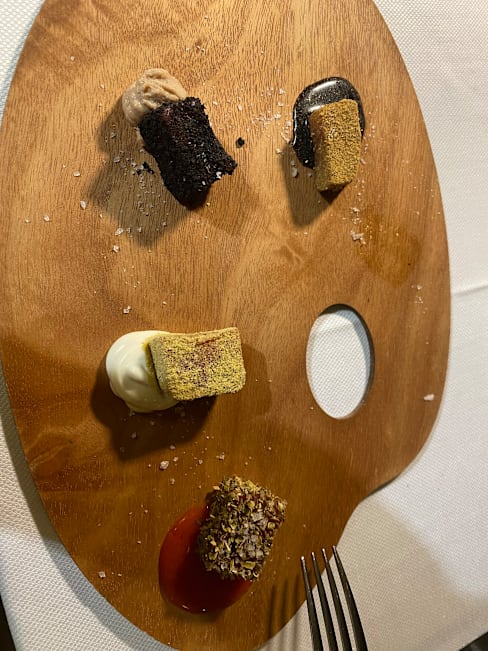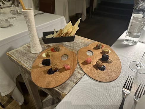 5/10Ordered «traditional (…)» tasting menu with wine. 7 courses, and 5 of them had the same tomato sauce. In one of the dishes there was a large fishbone and the lasagna had a 5cm long skinflap from the pork. Atmosphere was not so good either. Expected more variety due to the michelin guide and pricing.
