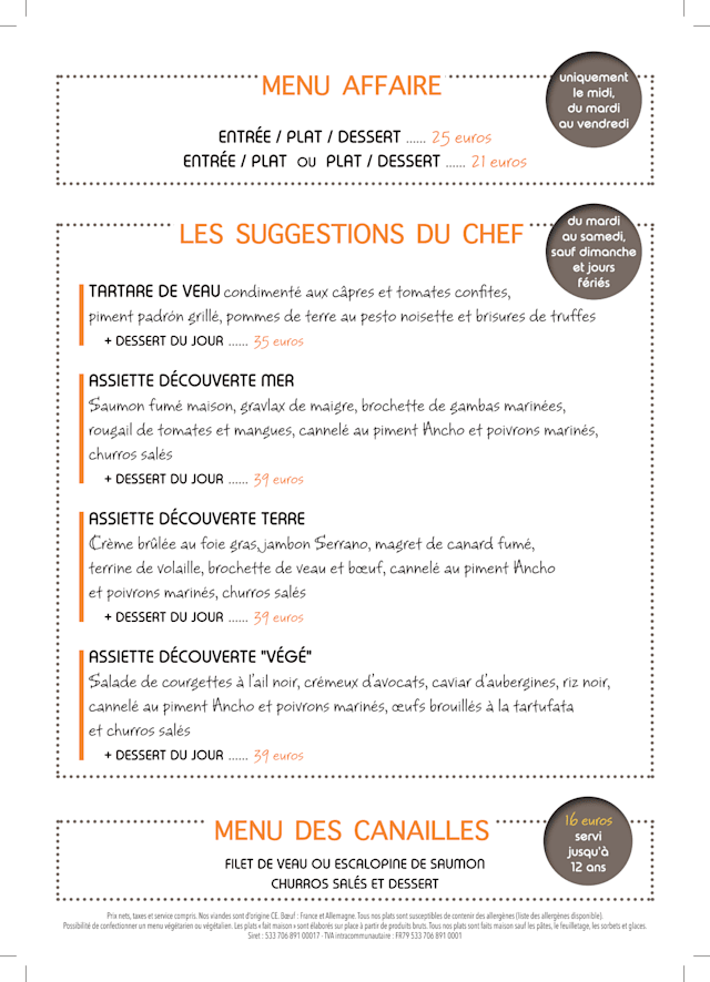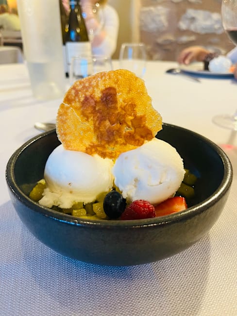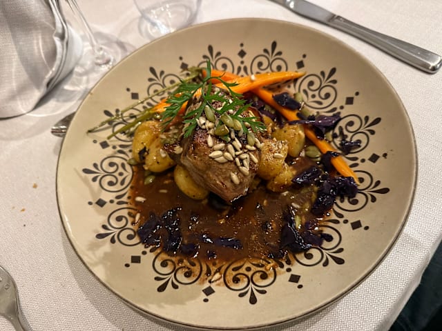 9/10Good setting and atmosphere on the terrace. Efficient and quick service by staff during lunch time. The starter - Autour de la Mer was ok. The Main dish - Filet de canard was delicious, The sauce was nice and the meat was juicy and fresh with a good balance of side dish. The Dessert- Sorbet colonel blended well with the diced pineapples. I would recommend this restaurant if you are in the area. I will be back to note other dishes in the near future.