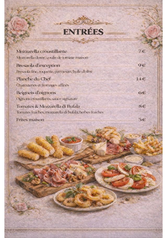 It was lit! Dua lips Calvin Harris’ chain smokers, no but seriously the food was awesome. Our server was great even gave us bread and Parmesan and they served us at 11:30 PM! The 50% off menu is a little smaller than the full menu be warned! Recommend if you’re hungry at night!! If they had played soft French music this review would be 10/10