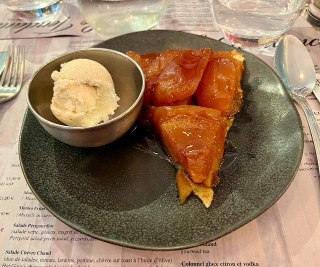 8/10Very relaxed atmosphere. Cuisine typique française with local customers (not too touristy) was nice too. We had the moules that were tasty and the tarte tartin that was very generous portion and very yummy.