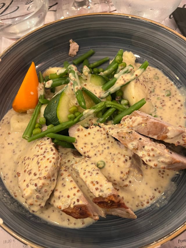 4/10Booked a table for four of us. We were told there were no outside tables available and would have to eat inside. We agreed. However when we arrived people in front of us with no booking were seated outside. Inside dreary,untidy. Food was awful My grandson ordered king prawns. Paying 26 euros,he was served up four very overcooked prawns. My son ordered mussels as part of the 36 euro menu, he was served up about 20 in a bowl , discovering that approx a third would not open.. Told the maître de who just shrugged and walked When we asked for finger bowl after peeling the prawns a very disgruntled women just threw four packets of wipes on the table. Young man waiting on table dressed in a hoody and pair of shorts, very inappropriately dressed. All the dishes we ordered were worse than " just made for tourists" Being people who spend many days in France on business and eating in many restaurants throughout the year. We can say this was among the most disappointing experience.