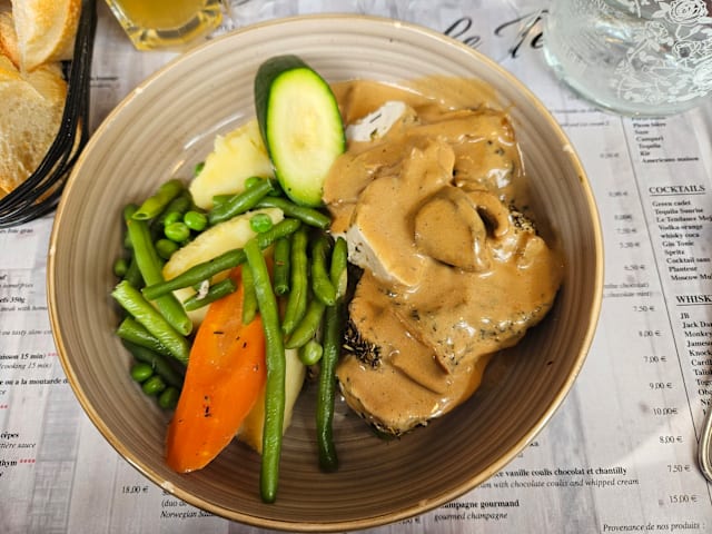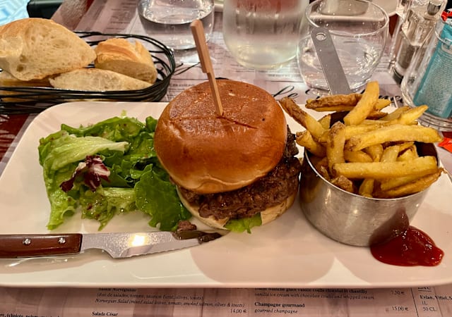 10/10This is our fourth day in France, and it was our favorite dinner experience by far. Food and drinks were superb: starting with petite charcuterie, smoked salmon plate, 6 escargots, to moules Tendence (I think that’s the name), burger with chèvre, agneau/lamb shank, and desserts - sorbet, Île flottante (meringue in vanilla cream sauce, crème brûlée). Our waiter (name?) was very kind and friendly. He let me practice my French and spoke English with the rest. 😊