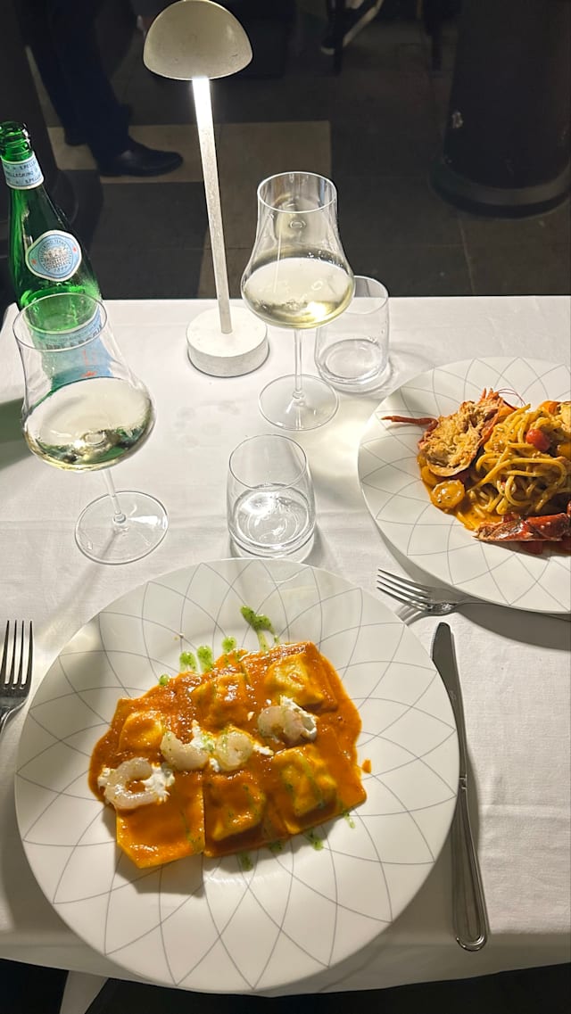 5.5/10Lobster spaghetti without lobster was presented with only shells on the plate! "Vitello tonnato" with tuna sauce had no tuna only mayo! 2 bottles of red wine ordered did not appear after 15 minutes... drinks glass was never removed from the tables. Atmosphere is nice but both food and service pretent more than they can deliver. Before above is dealt with we cannot recommend a dinner at this place.