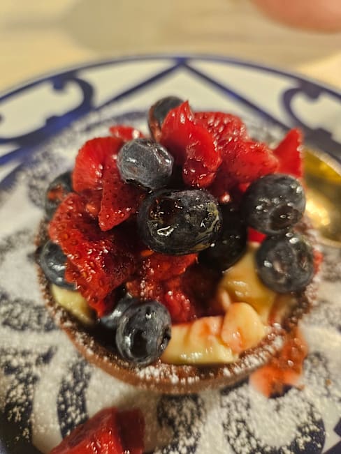9/10The food was very good and the ambience is wonderful, but Vincenzo made the experience even better than we had hoped for! He was extremely engaging, provided excellent service and had us all laughing and thoroughly enjoying our evening.