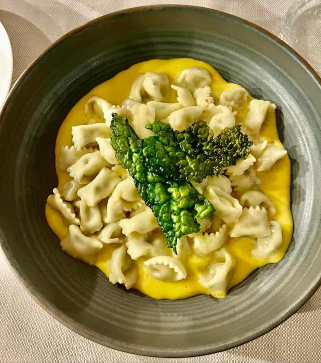 10/10We had a wonderful lunch. Antonio, our waiter was incredibly attentive, the setting was beautiful up on the sixth floor of the Gallo hotel with a nice window view; Duomo in the distance among the rooftops The setting was elegant, We are picky about wine glasses and glassware and these were excellent. Food was terrific, we had Seabass Tartar, smoked salmon, salad, and risotto, All were very good. Portions were very generous+. Dessert Apple almond cake, with cognac sauce was very good, and after the meal was done we had an extra bonus of being allowed access to the rooftop, which had a wonderful view in 360. A+