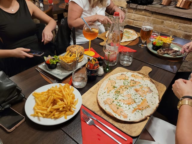 10/10It was the second time we were in this restaurant. Absolutely best flames in Strasbourg. The staff (three nice ladies) were hard working with a smile all the time.