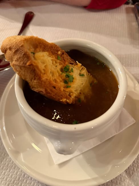 10/10We highly recommend this restaurant for a great dinner! The good and service were superb. My wife and I both had the French onion soup as an appetizer. My wife said it was the best French Onion soup she ever had! Both our dinner dishes were excellent,, chicken cordon bleu and the coc a vin! The manager and server checked on us several times to make sure everything was satisfactory Capped off the night with strudel snd espresso. Treat yourself to this restaurant for a great evening!