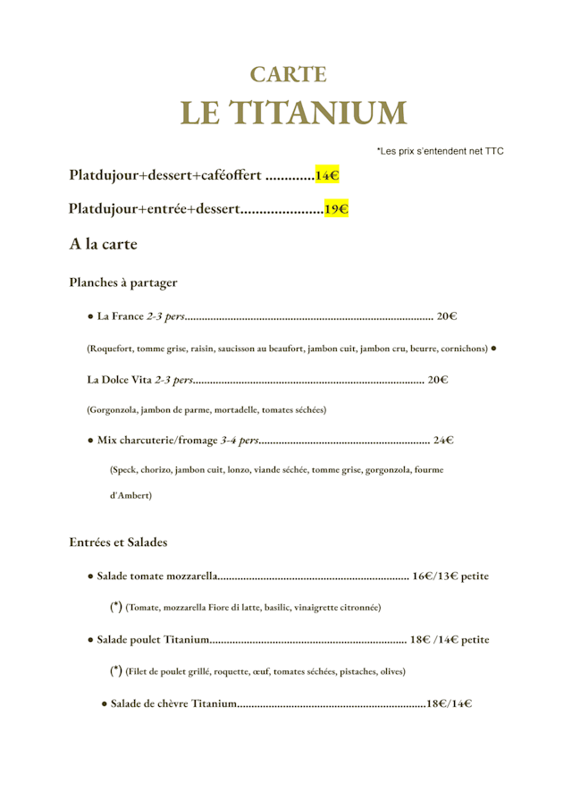 Mark K. • 2 reviewsJuly 14, 202510/10great food vwryrelaxing atmosphere singing was lovelylikeReportLe Titanium • OwnerThanks