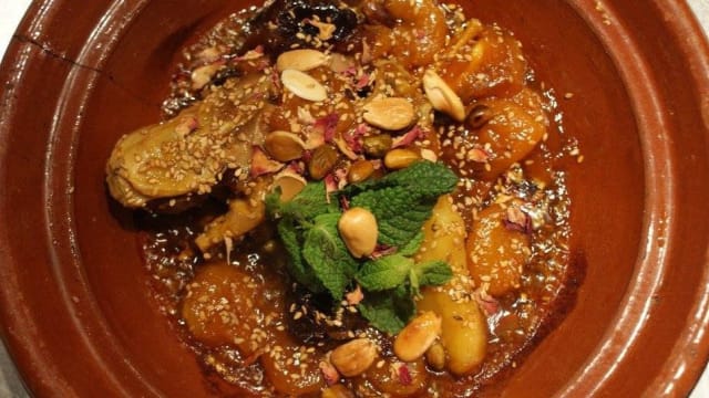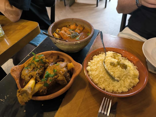 10/10Nice Moroccan restaurant in Old Lyon, short walk from Metro and Funicular. Welcome was enthusiastic and service was friendly and courteous. There was some background music, but thankfully not so loud as to impair conversation. Food was nicely seasoned and plentiful - we shared a Mezze appetizer and two mains, and would have been very satisfied with just one main. Would return if in the area.
