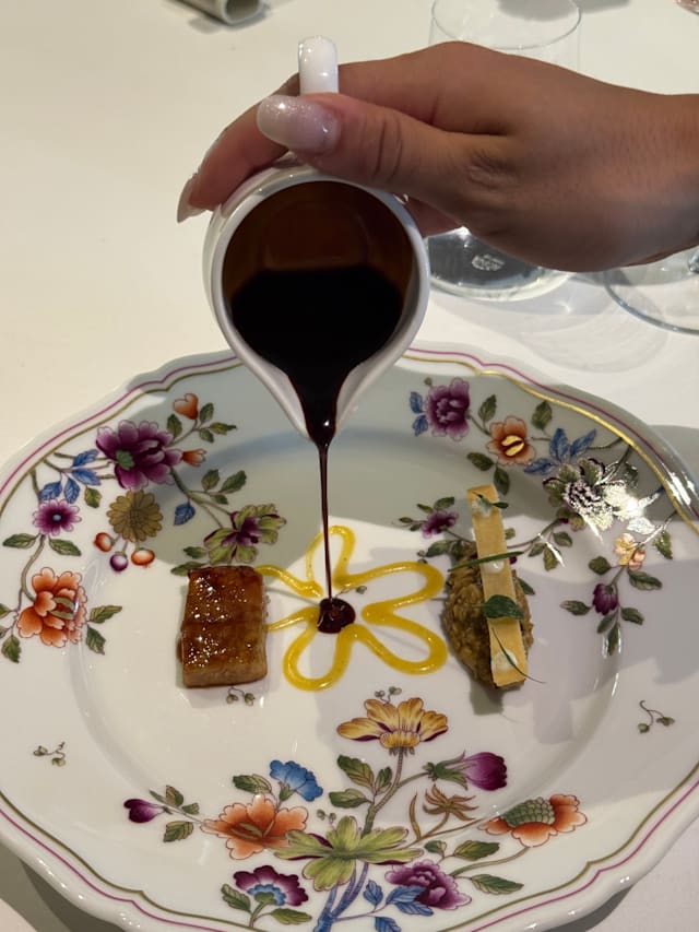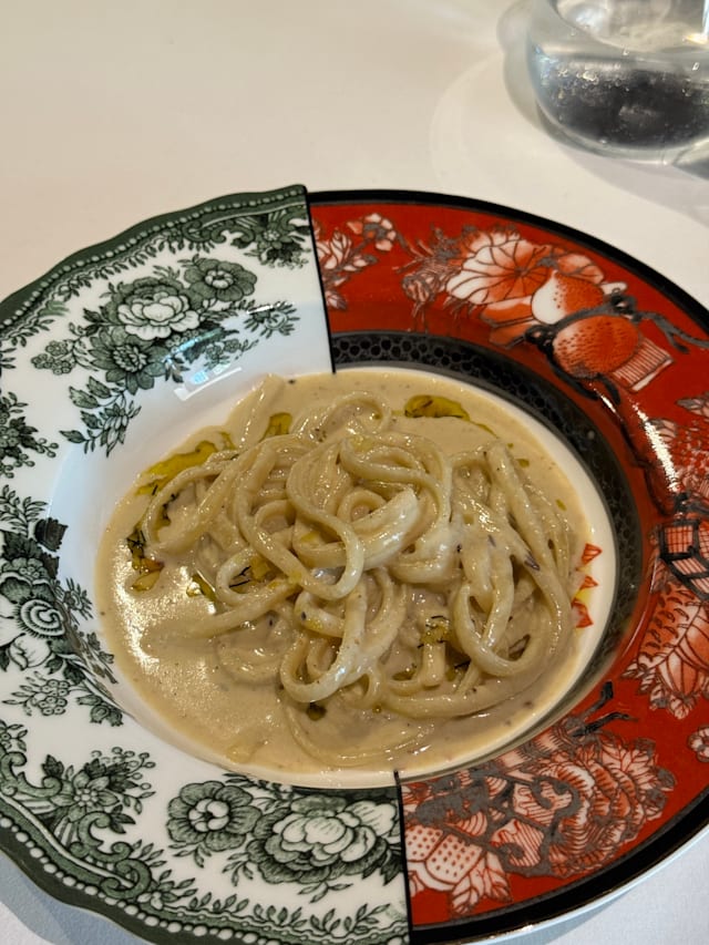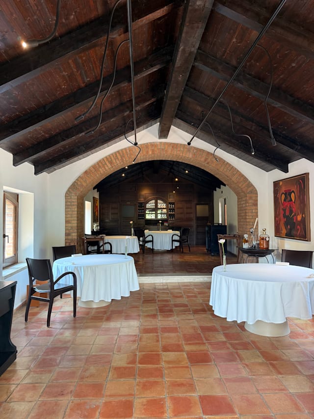5.5/10We left wondering how they got their Michelin star. The place is beautiful but you come for the food and more than one of the dishes lacked taste and flavour. The waiters were professional but seemed tense. The wine menu was expensive compared to other high-end Italian restaurants we have visited and the the amount of wine poured was very small. We felt especially cheated and were really surprised when the “wine” with a dessert was presented as “a very special kind of Italian water”. It was a glass of San Pellegrino, indeed a nice mineral water, but we buy it back home 2000 km away from Italy in six packs for 13 Euro. It does not belong in a wine menu.