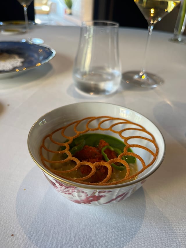 9/10Food was delicous, wine pairing was on point, one thing to mention removed my half full wine glass without asking if I want to finish it. And the ambient music really sounds like you're in an elevator (very small speaker). Nota bene- if the table linen is stained don't put it on the table. Other than that everything was great!