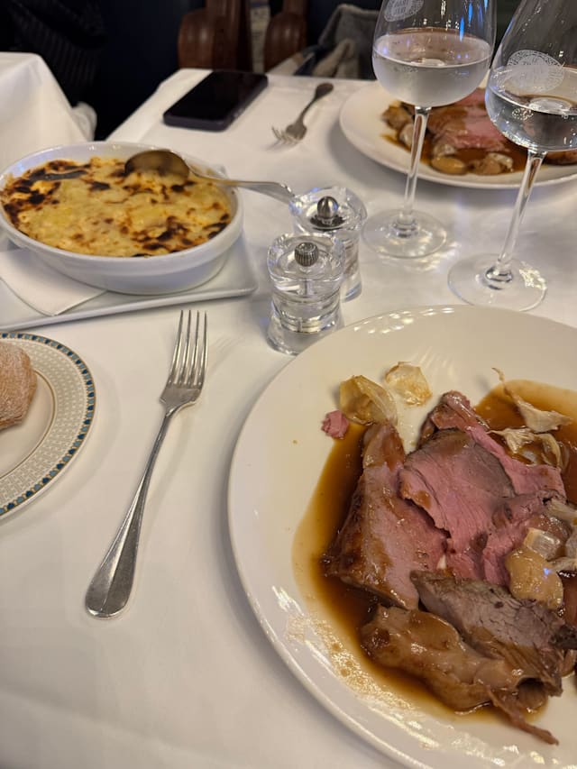 10/10We enjoyed delicious, hearty meals in a wonderful space. For an appetizer, we had marinated scampi(?), which looked and tasted amazing. I had read review that said it was recommended as a final dinner in Paris, and I truly believe that's the case. If I have the opportunity to visit Paris again, I'd definitely like to go back. Although the restaurant was full and lively with customers, it was lively enough that you could have a conversation, and it felt more relaxed than if it were too quiet, making for a nice.