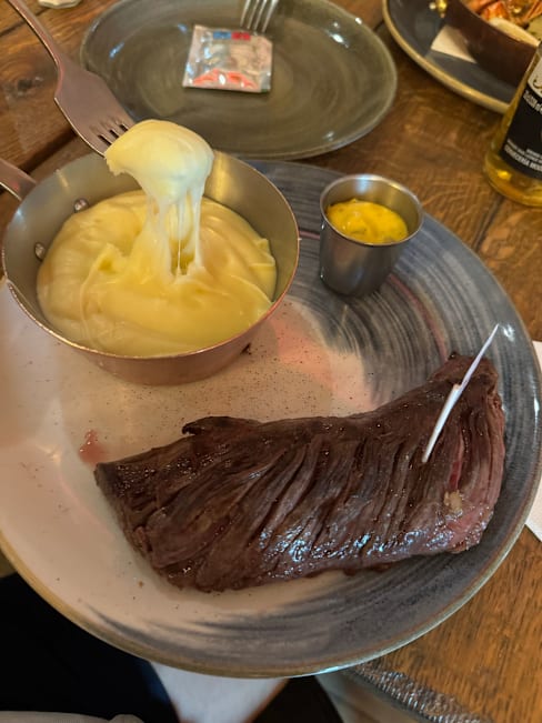 3.5/10The steak was horribel, ordered medium rare. It was cold, and also the sauces were cold. I complained, and i got a new one. The new stake was warm, but the core were still cold. And the sauces were even colder than the first time. Soo it was not a nice stay. Althought the duck was very good, and the wine were up to standard.
