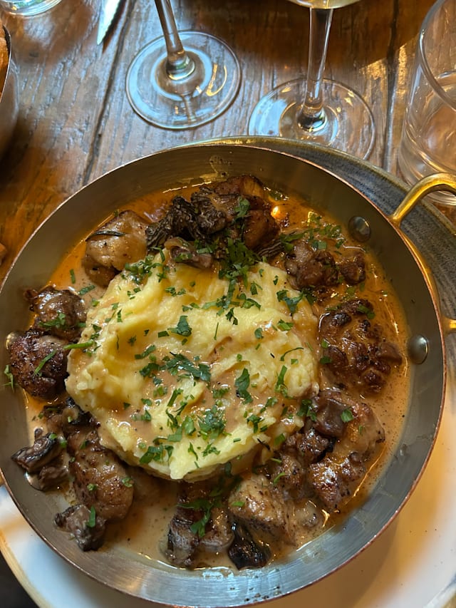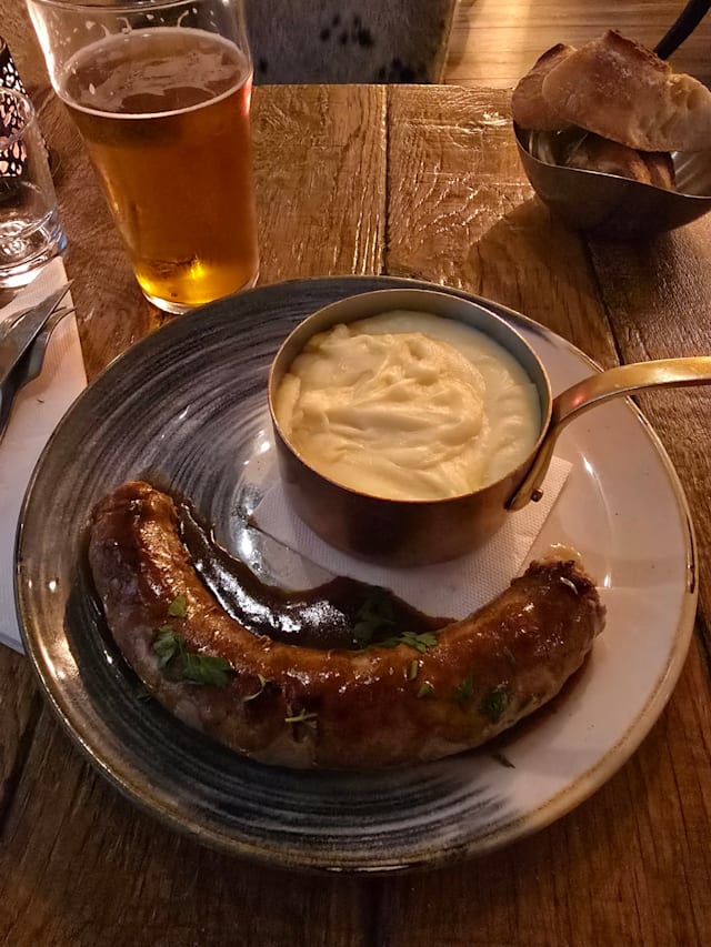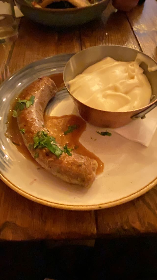 8.5/10Pleasant relaxed place. I recommend the Sprats (little fish) followed by sausage with aligot which is mashed potatoes creamed with s gloopy cheese