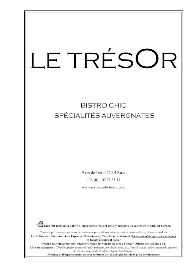 7.5/10This was our second time dining at Le Tresor. The first imd was exceptional, including food and service. So we brought friends who were visiting Paris. The food was good. The service was not.