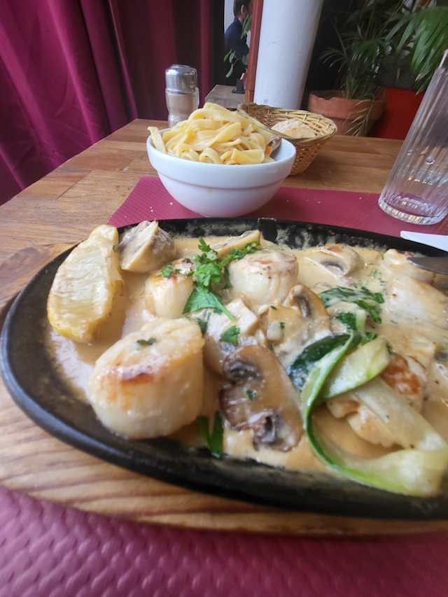 8/10Good, plain, tasty food in homey atmosphere. We found it very appealing that they have two tables for one. Quiet until about 8:30, then moderately loud; my decibel counter (the SoundPrint app) registered 75 decibels average with the loudest moments reaching 85. That’s similar to restaurants in my hometown (Washington DC) that serve liquor but are not a bars. The best thing is the low-key, just-folks atmosphere, which put us in a good mood. It’s the kind of place where you can get a single scoop of ice cream for dessert. Convenient to the Gobelin tapestry museum.