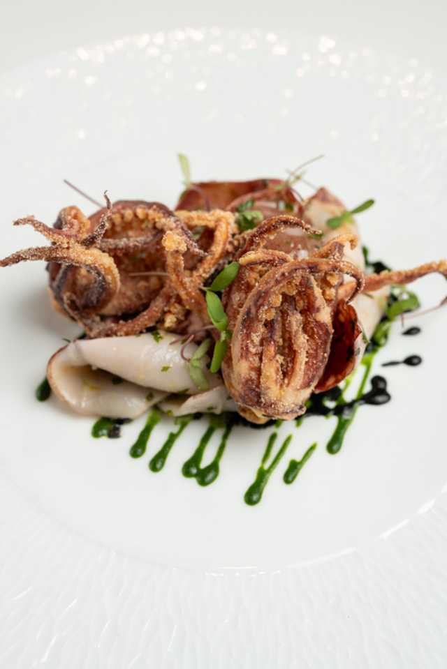 - Snacké à la plancha poutargue jus d’arête au vermouth