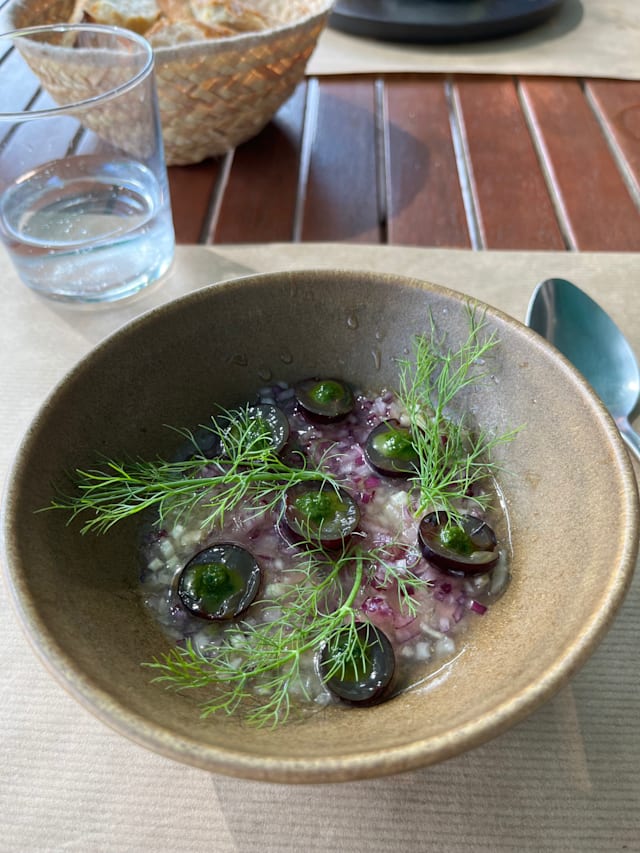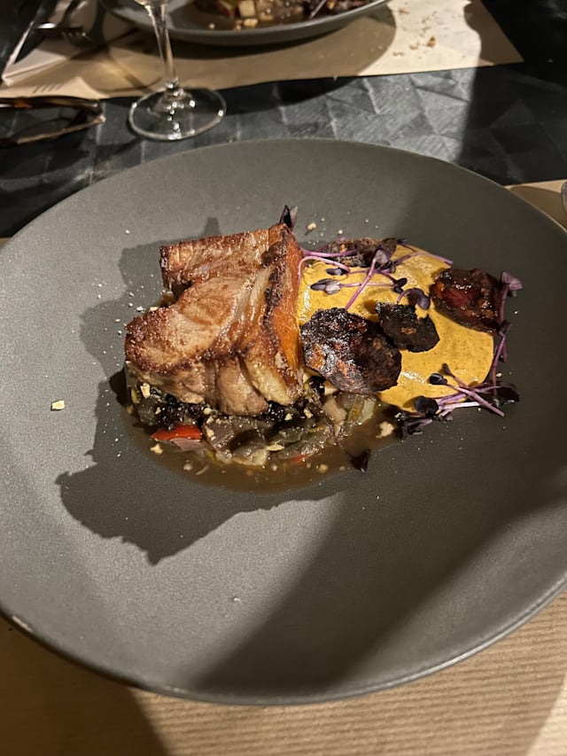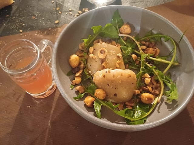 8.5/10Excellente atmosphere and modern light menu for 20 euros. Very pleasant service, a bit slow, but very friendly with good music in the background. The Fork mentions "no alcohol " completely wrong, good wines and cosy bar. Lots of free parking.