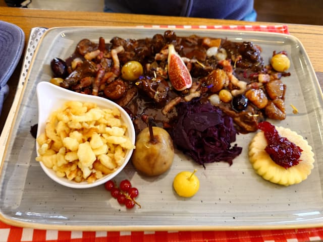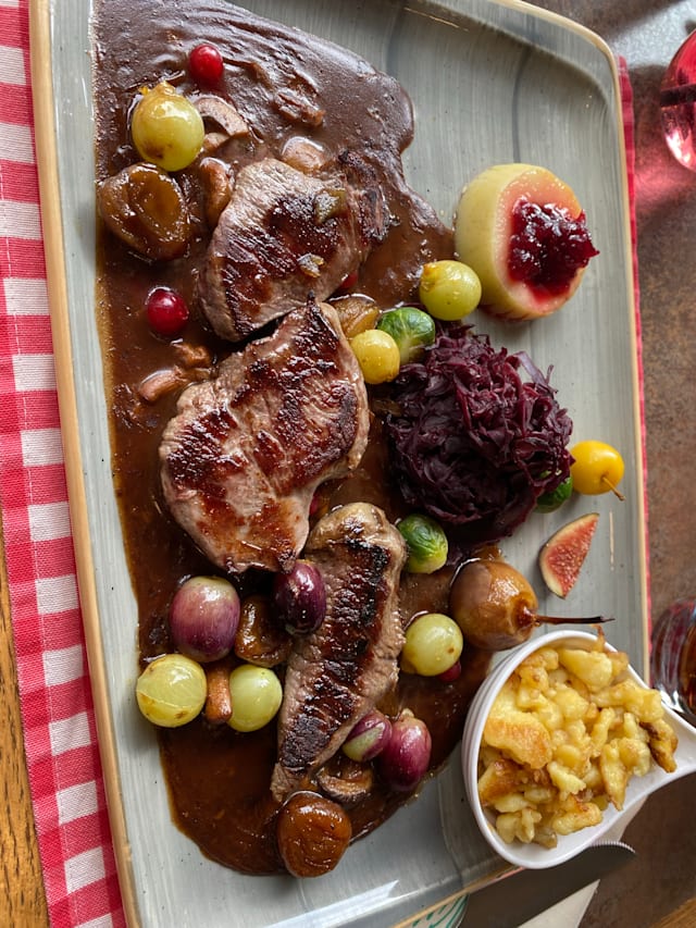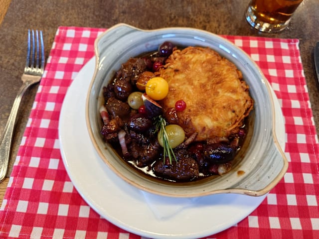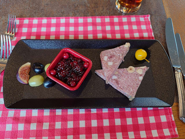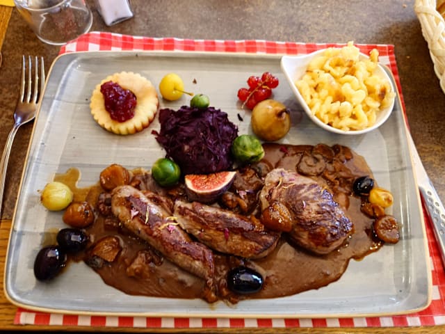9.5/10The “Hunter’s Menu” was very appealing. We ordered the game terrine which came on a beautiful plate with mixed salad. Also had the wild boar which tasted like a very tender beef steak, with wonderful garnishes of poached apple and pear . The mussels mariniere were small but the huge serving was more than we could finish. And they had a real IPA to drink with them. Highly recommend this place.