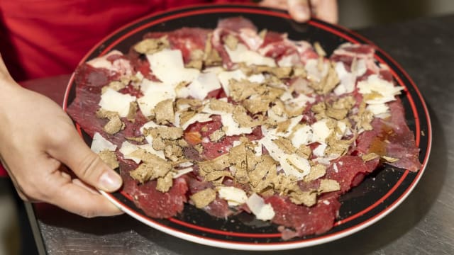 - Carpaccio di “carne salada “ del trentino con parmigiano e tartufo
