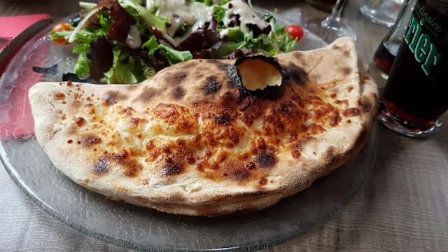 - Crème de truffe, mozzarella, burrata, jambon blanc, roquette