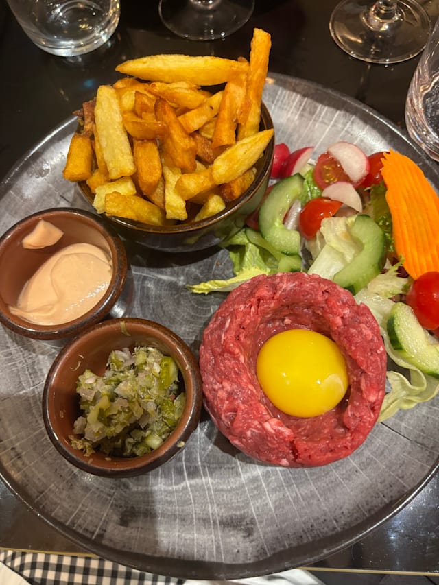 10/10It is a good four star place of its kind. I was tempted to give this place five stars just to pull it up the rankings as I feel there are some reviews which are unfair . Maybe some people had different expectations and were disappointed . It is not a classy restaurant , not a family run, cosy eating experience. Rather it is a bit old fashioned , quite basically furnished , though providing a perfectly adequate and jolly atmosphere on a Saturday night . It’s a bit like an English pub , though the food is superior to pub grub . Not a gastro- pub - football is showing on a screen in the corner and lots of people just come in for a drink. A real mix - mostly locals , some families , some Muslims, some lorry driver types , all chatting away animatedly . Service was brisk and very efficient . The servers did not have time for a long chat but listened carefully to our order. The food was old fashioned French menu eg steak and chips, bavette, chocolate mousse . All delicious and the chips were golden and crisp. The place is set on the main square - the only lively bit of town - and has outdoor seating , covered and with patio heater in winter. .