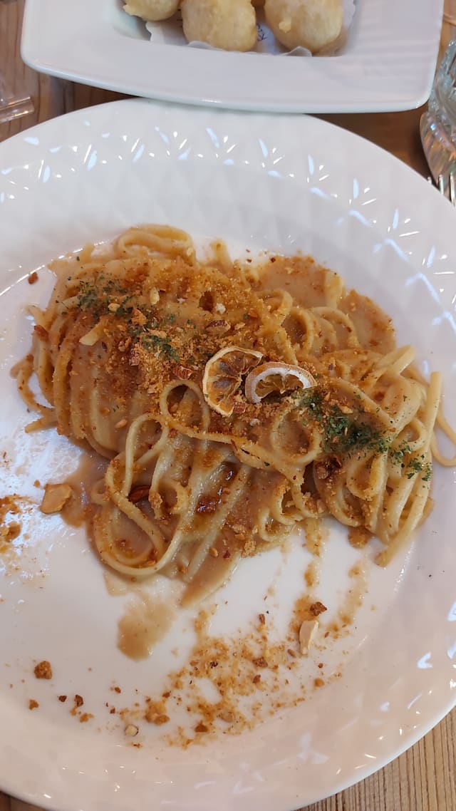 Con burro, acciughe, limone e pane tostato alle mandorle