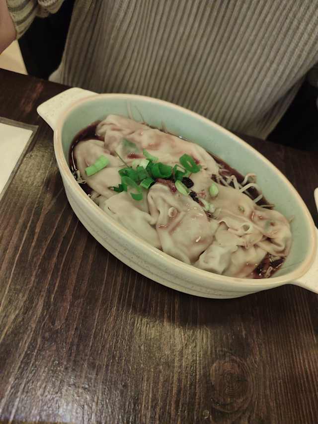 - Wonton (fagottino con carne), salsa agro-picante, germogli di soia, scalogno soffritto con maiale, cipolotto.