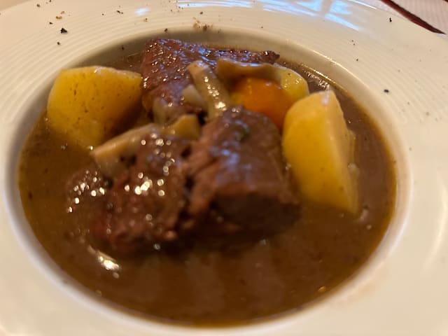 10/10Le Vieux Bistrot was a lovely restaurant. It is small but with an inviting atmosphere. We came for the beef bourguignon and it did not disappoint. I had the shrimp scampi and it also did not disappoint. I suggest a reservation as there are only a dozen or so tables.