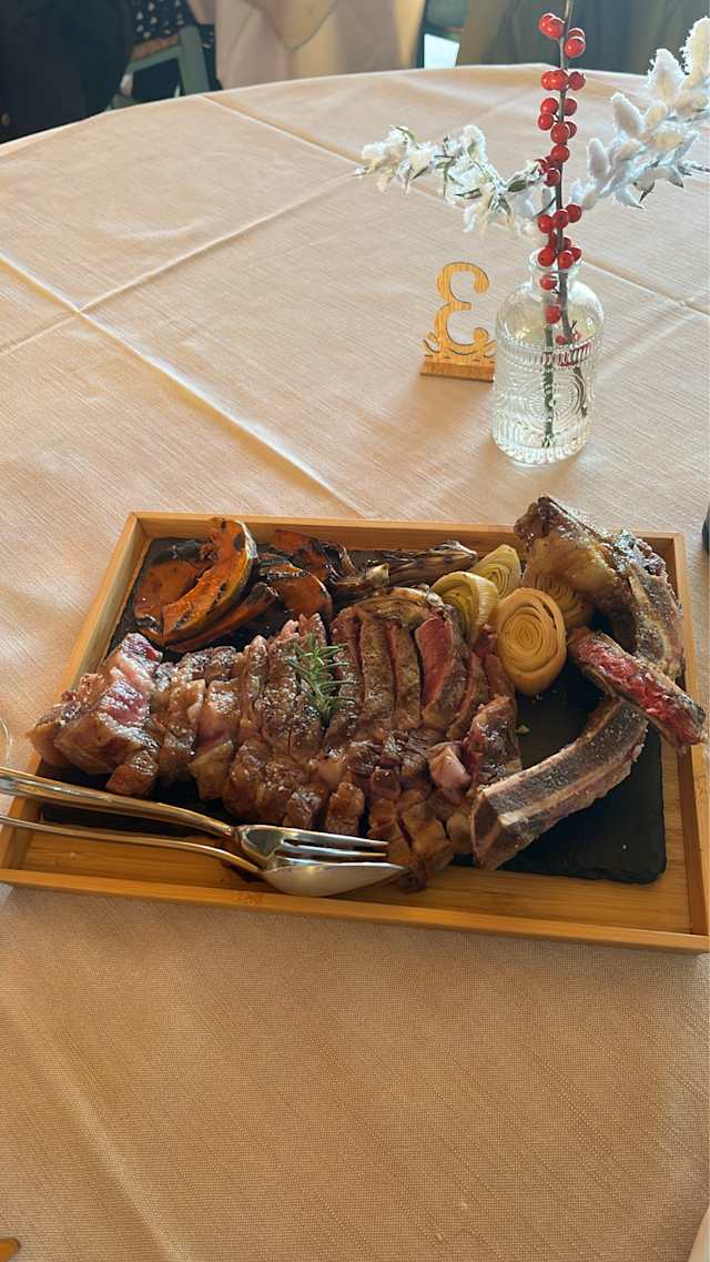 - Maxi tagliata di scottona servita in ardesia con contorni misti