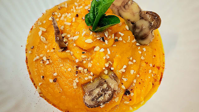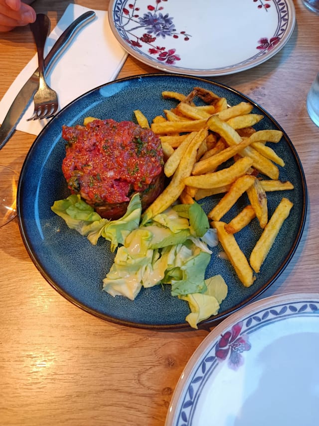 4/10Food was cold. My friend almost choked on the meat that was served. She'd have to chew 5 minutes on one small piece. It took about twenty minutes before we even had the menu. The wait on the food was extremely long for it being cold. The place was loud and they obviously had more eye for the bar/ club activity in the front than for the dining area. The food is really expensive for what you get. Would not recommend going there. There is no view to the eiffel tower like Google shows.