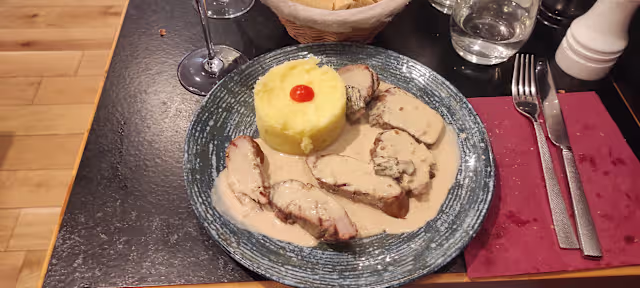 - Pièce du boucher grillé et fumé au thym 180gr, sauce au poivre et gratin dauphinois