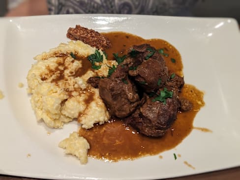 9/10This restaurant is a gem. I was welcomed warmly, even though my husband couldn’t come at the last minute and our reservation was for 2 people. The winter menu was amazing. The wine choices are a bit overwhelming, but the wine descriptions were good. Their Gorgonzola Gnocci was smooth and melted in your mouth. The sea bream was cooked perfectly, with a great blend of flavors, including a wonderful olive tapenade. The only disappointment was dessert. I found the crem brûlée wasn’t the best choice.