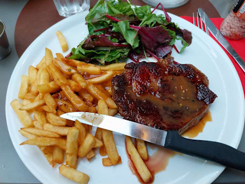 9.5/10We don’t eat meat but had plenty of choices here. We decided on tuna steak and salmon ravioli. Then for dessert we chose a lovely apple tart with salted caramel. Delicious! The meal for 2 of us with a picher of wine was 56 euros.